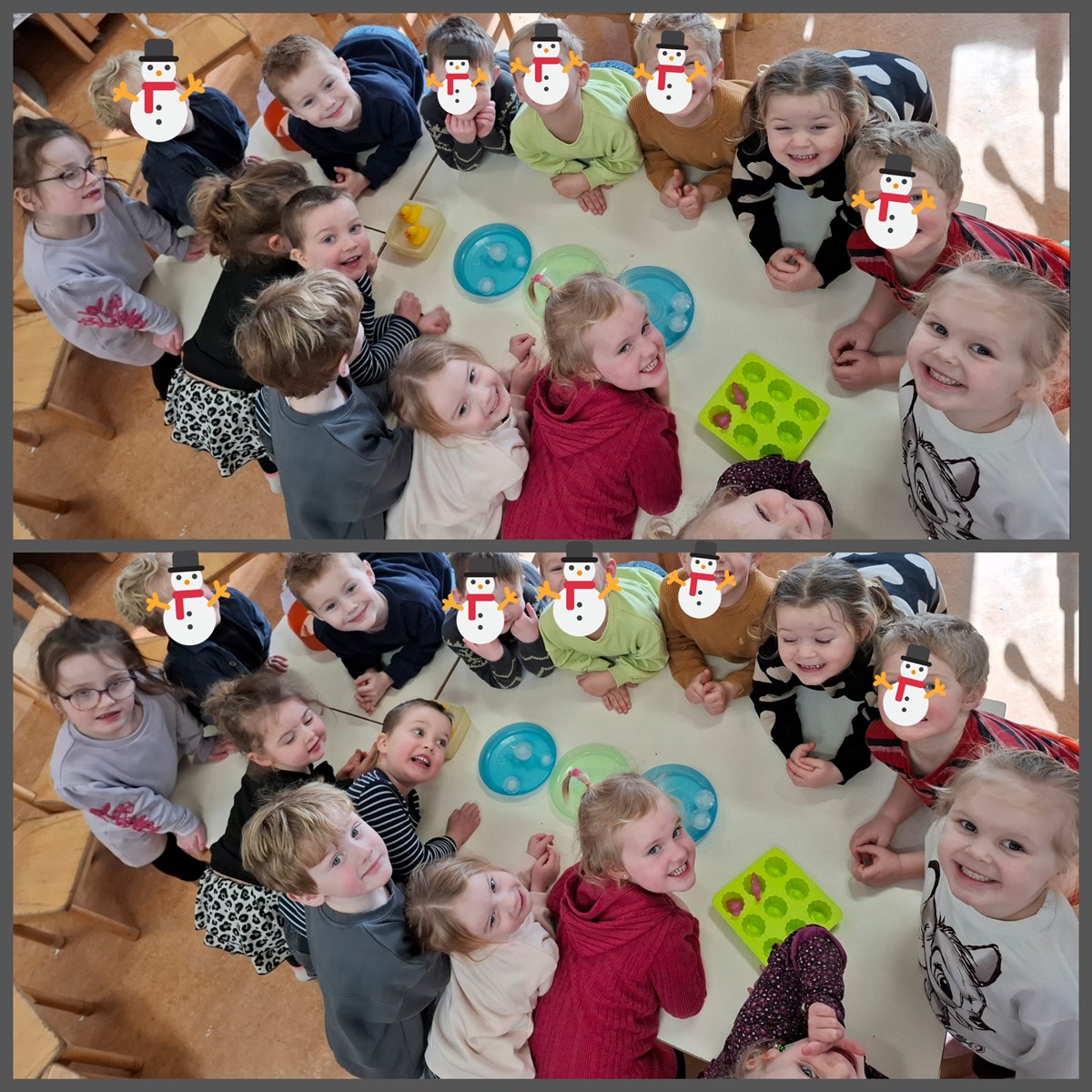 Tijdens het thema over de Winter, hebben wij het onder andere over smelten/dooien, vriezen, sneeuw, ijs en alles wat daarbij komt kijken! Eerder hadden wij de eendjes in een badje gedaan met water en vormpjes gevuld met water. Wat gebeurd er als we deze in de vriezer zetten waar het onder de nul graden is? En wat gebeurd er als we deze er weer uithalen? Hier hebben we mooie gesprekken over gehad!