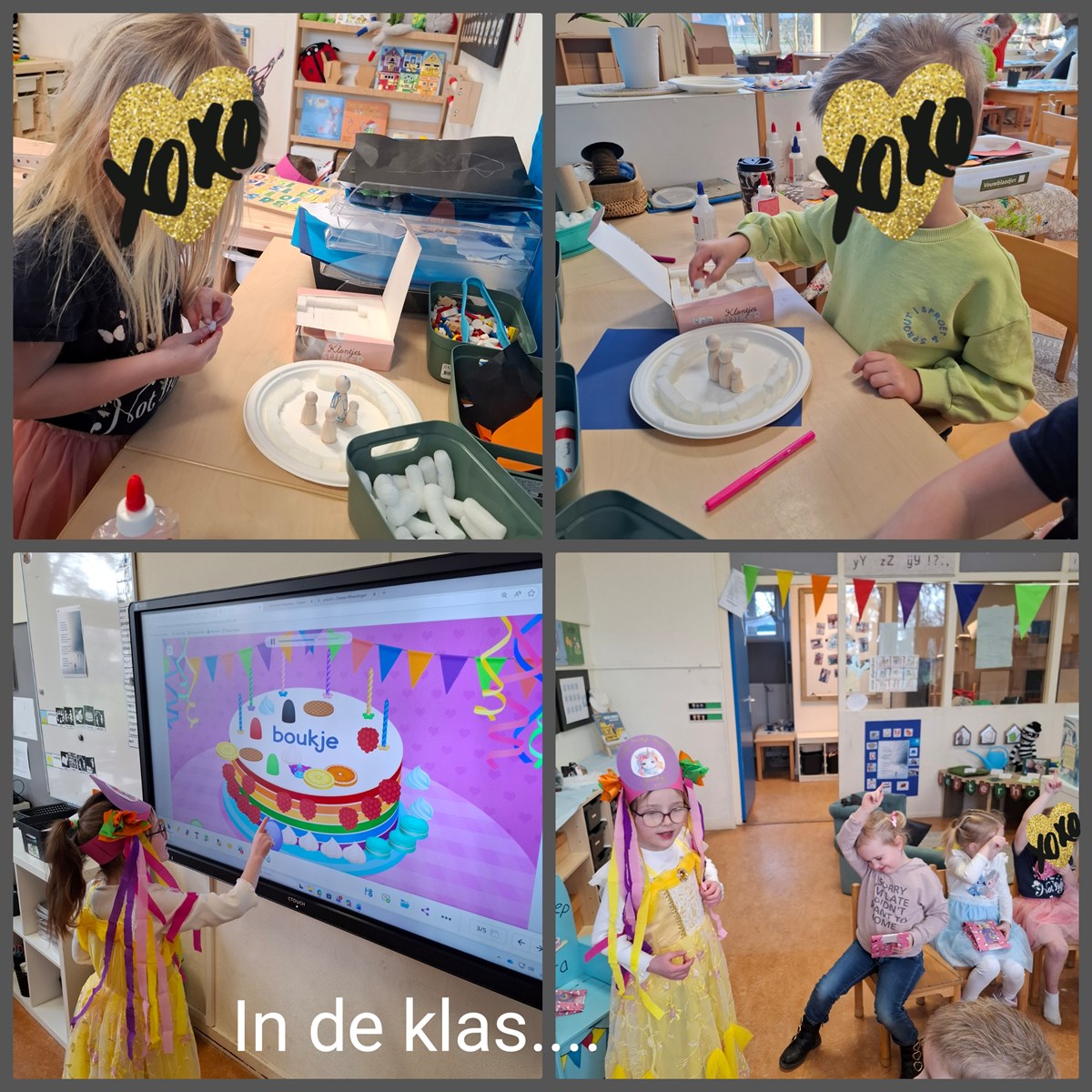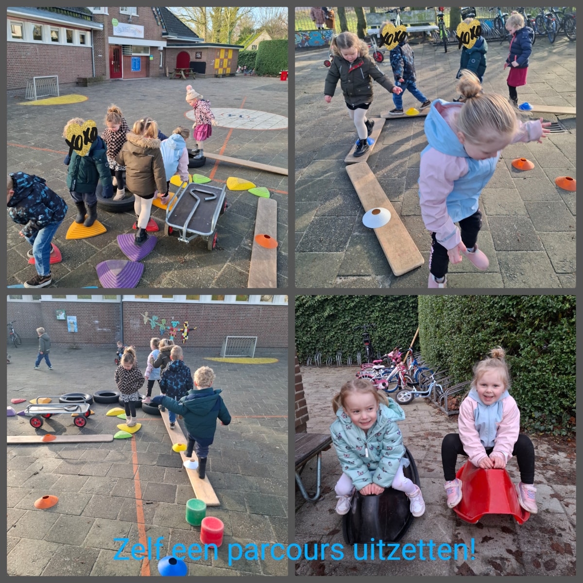 Verder hebben we deze dagen lekker buiten kunnen spelen, een eigen parcours uitgezet op het schoolplein, maar ook gezellig een verjaardag gevierd en zelf een iglo gebouwd. Hoe bouwen we deze stevig, zodat hij niet omvalt…?